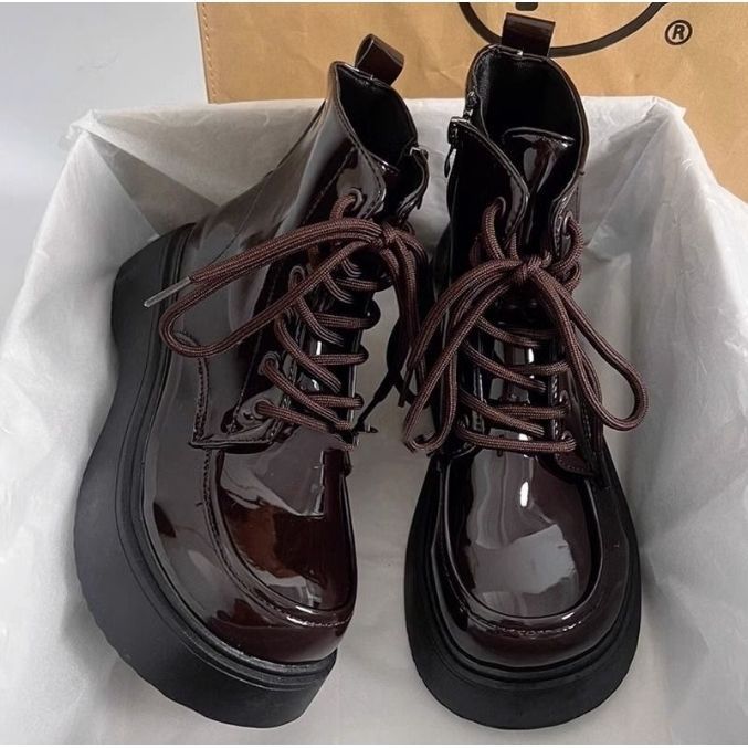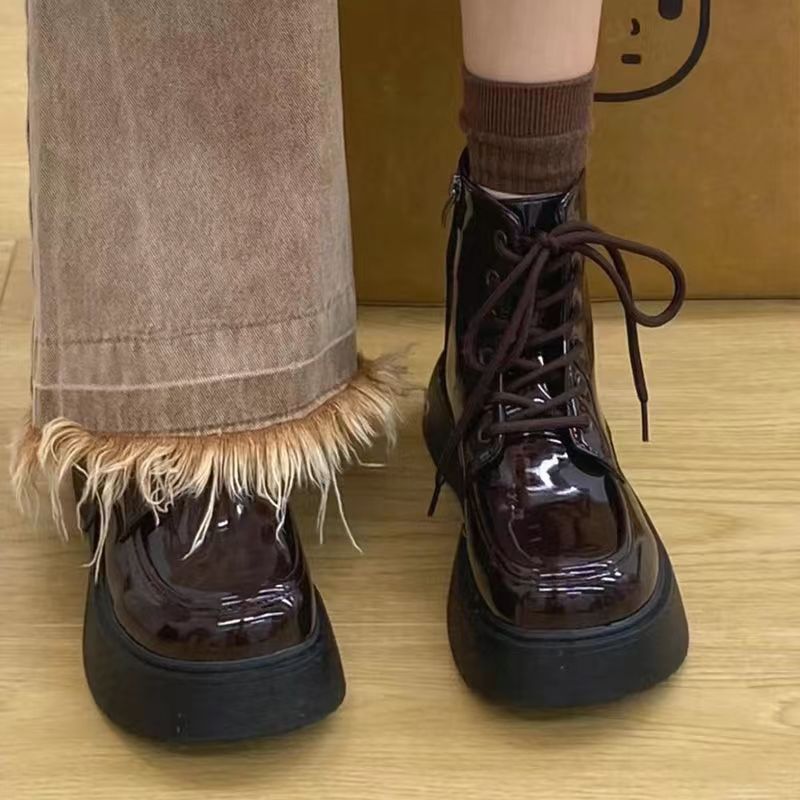 French Martin Boots Small Leather Shoes 2025 New Fashion Short Boots Net Red Dress With Thick-Sed Loose Cake Shoes HZ0115