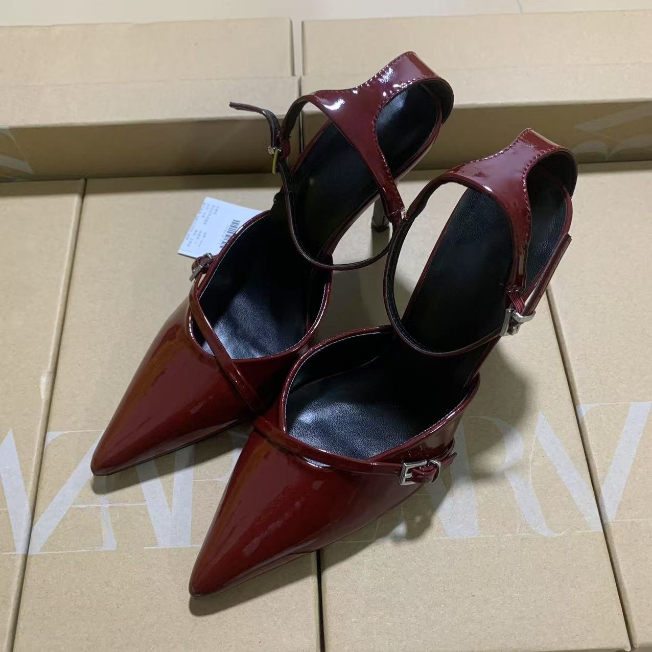 ZA Home 2025 Fashion New Pointed Women's Shoes Classic White Patent Leather Shallow Heel Stumbling Women's High Heel Sandals HZ0115