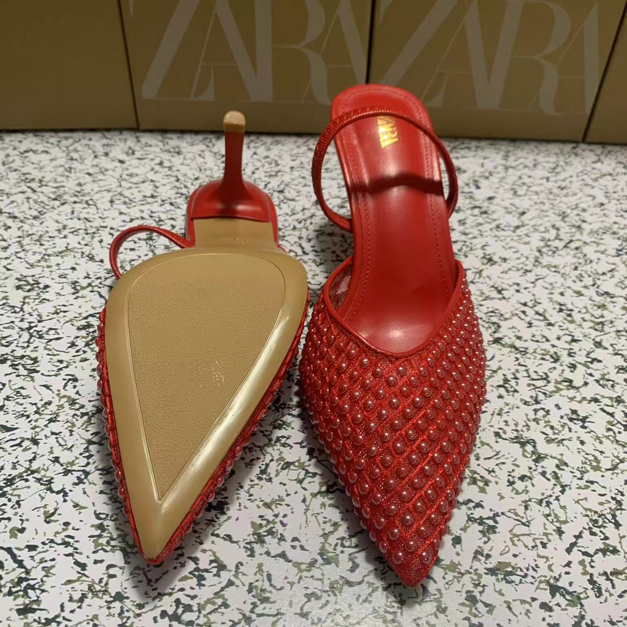 ZA Home 2025 New Pointed Shoes Slippers And Women's Fine With 2025 Summer New Hollow Mesh Yarn Half Drag Woman HZ0115
